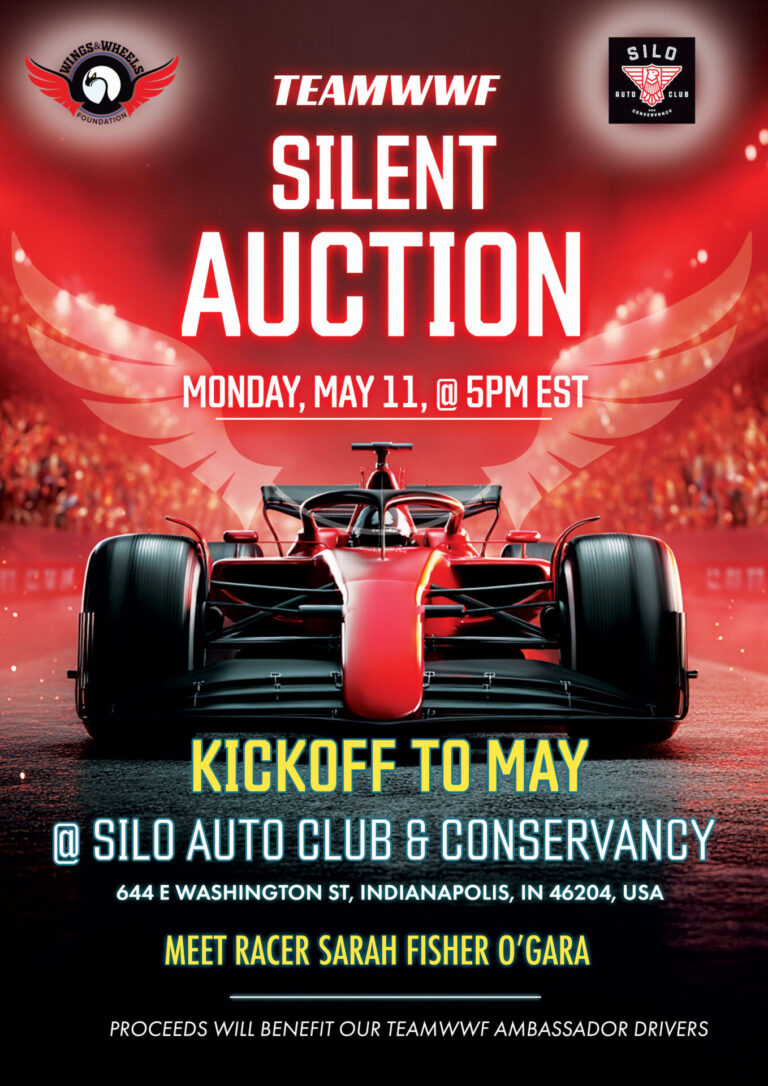 Kick Off To May ~ TeamWWF Silent Auction @ Silo Auto Club & Conservatory — Join TeamWWF on Monday, May 4th, from 5:00–8:00 PM at SILO Auto Club and Conservancy (644 E Washington St, Indianapolis, IN 46204) for an exclusive evening to kick off the Month of May. Enjoy access to this private, members-only exotic car facility, a silent auction, and the opportunity to connect with fellow racing fans.