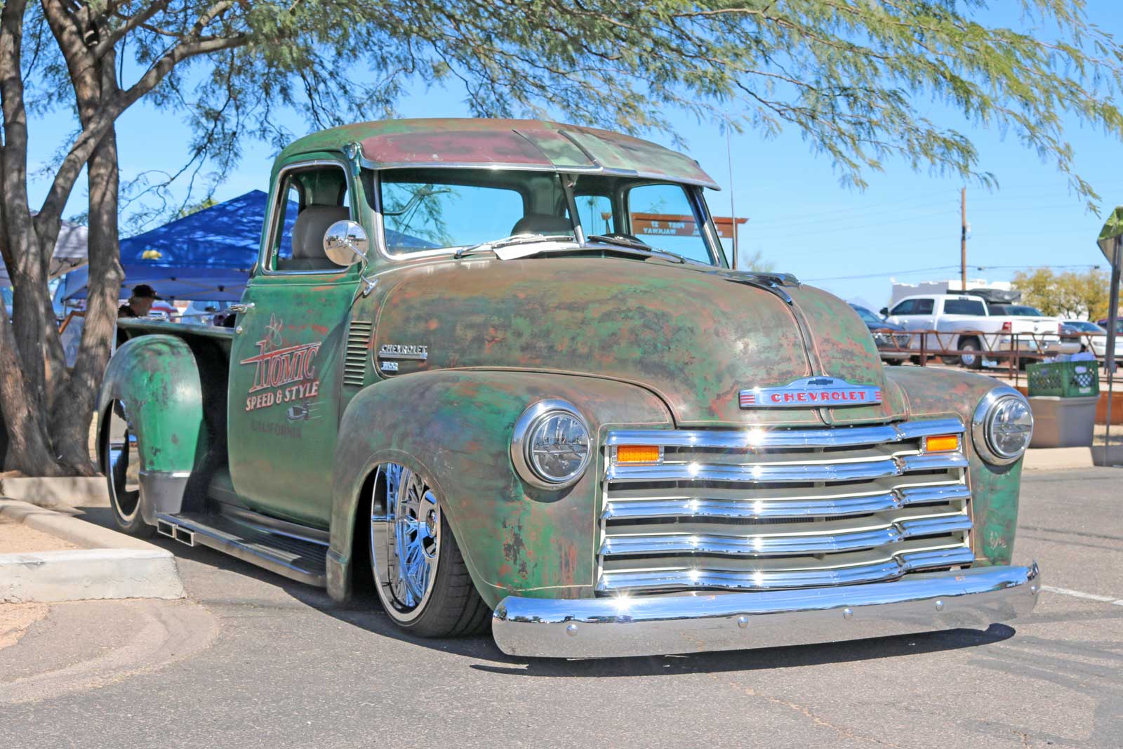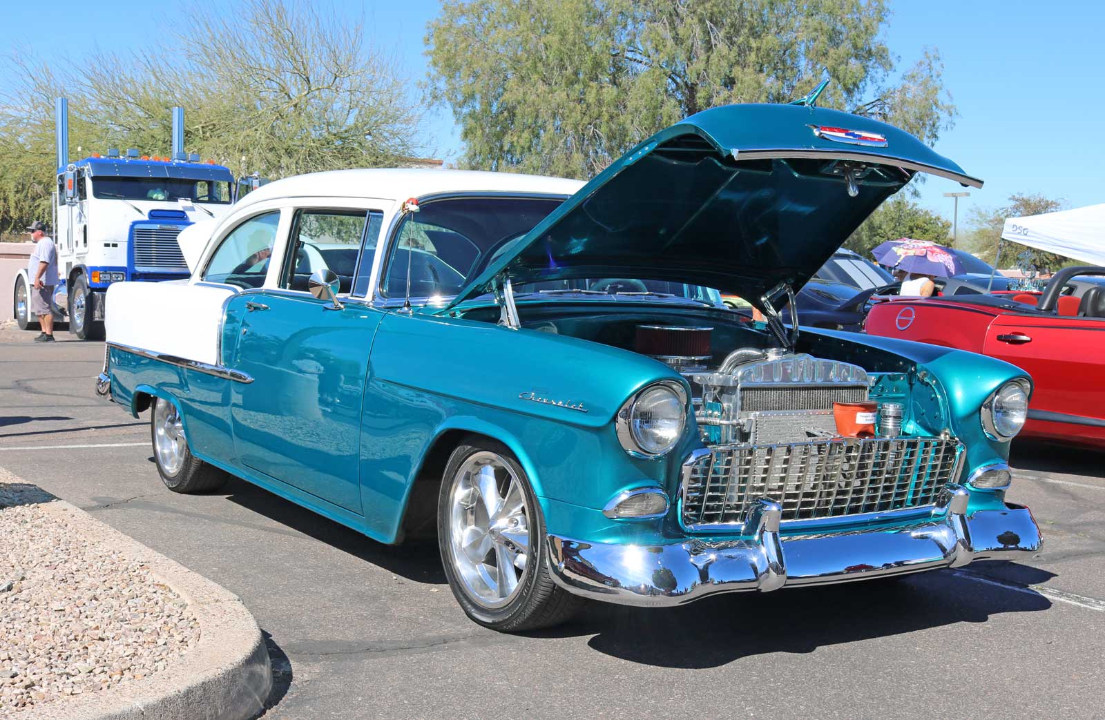 Beyond the amazing local collection of classics and customs, there were a few amazingly unique rides as well, like the super-sized and mega-chromed TRIP-DUB Racing Freightliner and the 1986 Pulse Air Force None plane-inspired 2-seater.