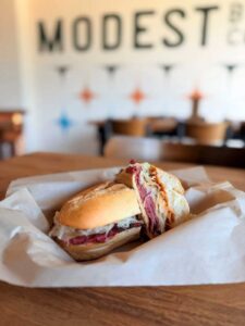 • Modest Pastrami Sandwich photo courtesy of Modest Brewing