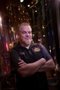 In 2021, after COVID and wanting a change, they moved to Las Vegas and David got a job brewing at Hop Nuts and was also traveling back and forth to Anaheim to help a buddy open Villains Brewing (at which he helped earn a GABF bronze medal for American Light Lager). After a year and a half, the traveling got to be a lot, so at that point David decided to plant roots and stay in Las Vegas. He had moved over to Able Baker until June 2025 when Tom Harwood left Nevada Brew Works to return to Triple 7 and recommended him to (Owner) Jason as his replacement as Head Brewer. David now splits his time brewing at Nevada Brew Works’ two brewery locations, both of which have similar brewing systems, but with the one on Main Street being steam fired and Boca Park’s direct fire.