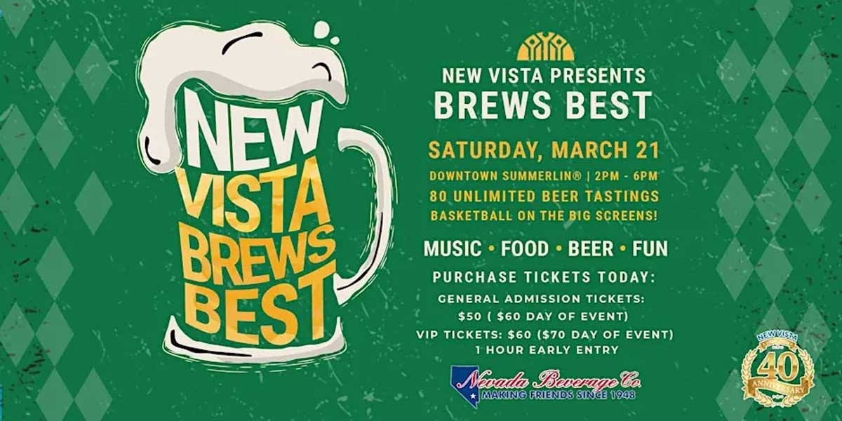 General admission tickets are $50 in advance and $60 at the door and VIP tickets (with early admission at 1 p.m. and access to exclusive additional liquid libations) are $60 in advance and $70 at the door. Proceeds will directly benefit New Vista, Nevada’s leading non-profit supporting individuals with Intellectual and Developmental Disabilities providing services, training and housing to people living with IDD in Southern Nevada. To purchase tickets, click here.