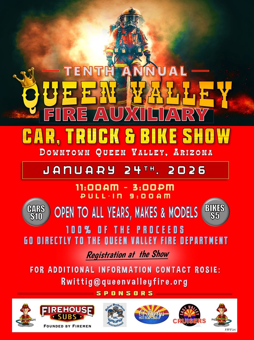What a wonderful day it turned out to be in Queen Valley, Arizona, as we celebrated the Fire Auxiliary’s Tenth Annual Car, Truck & Bike Show.