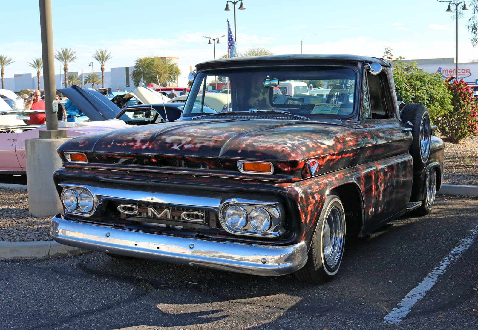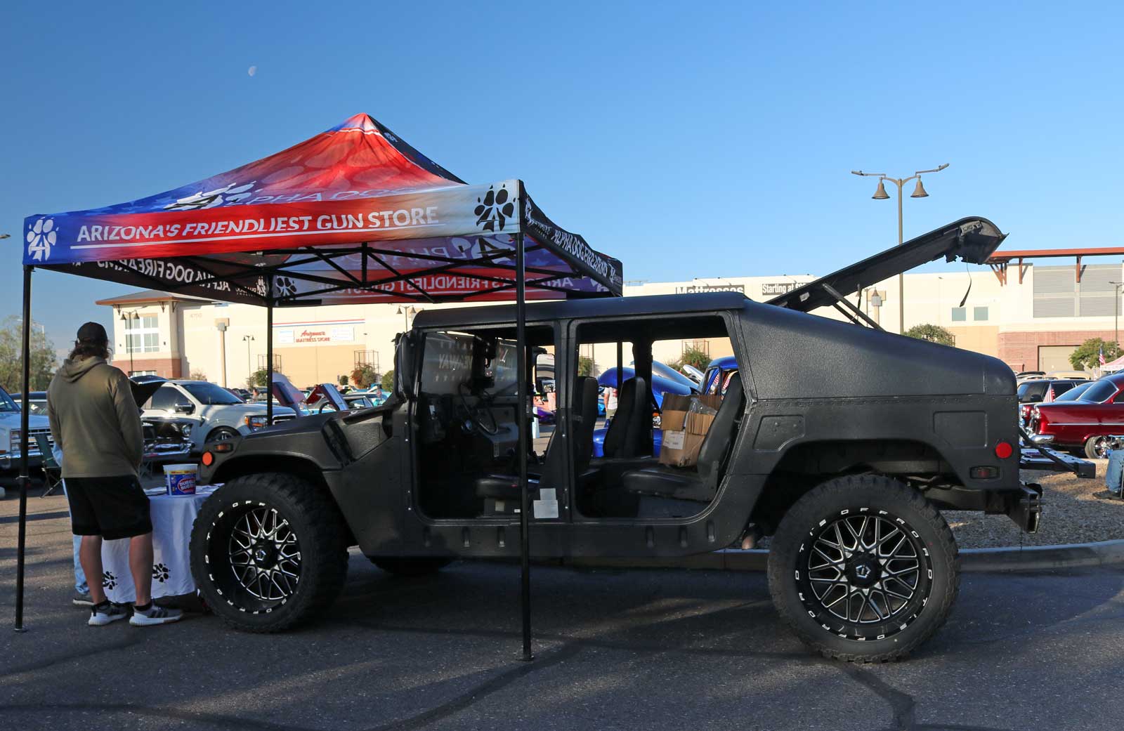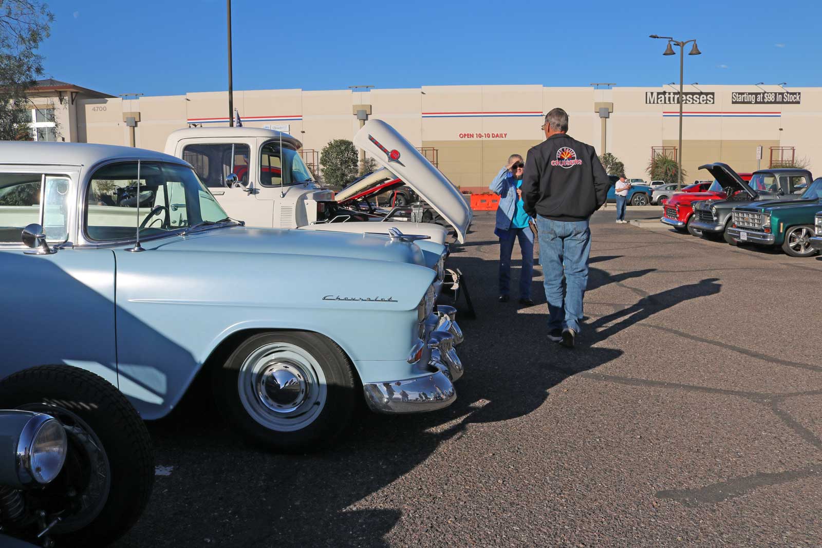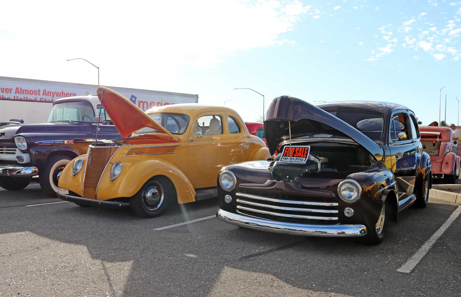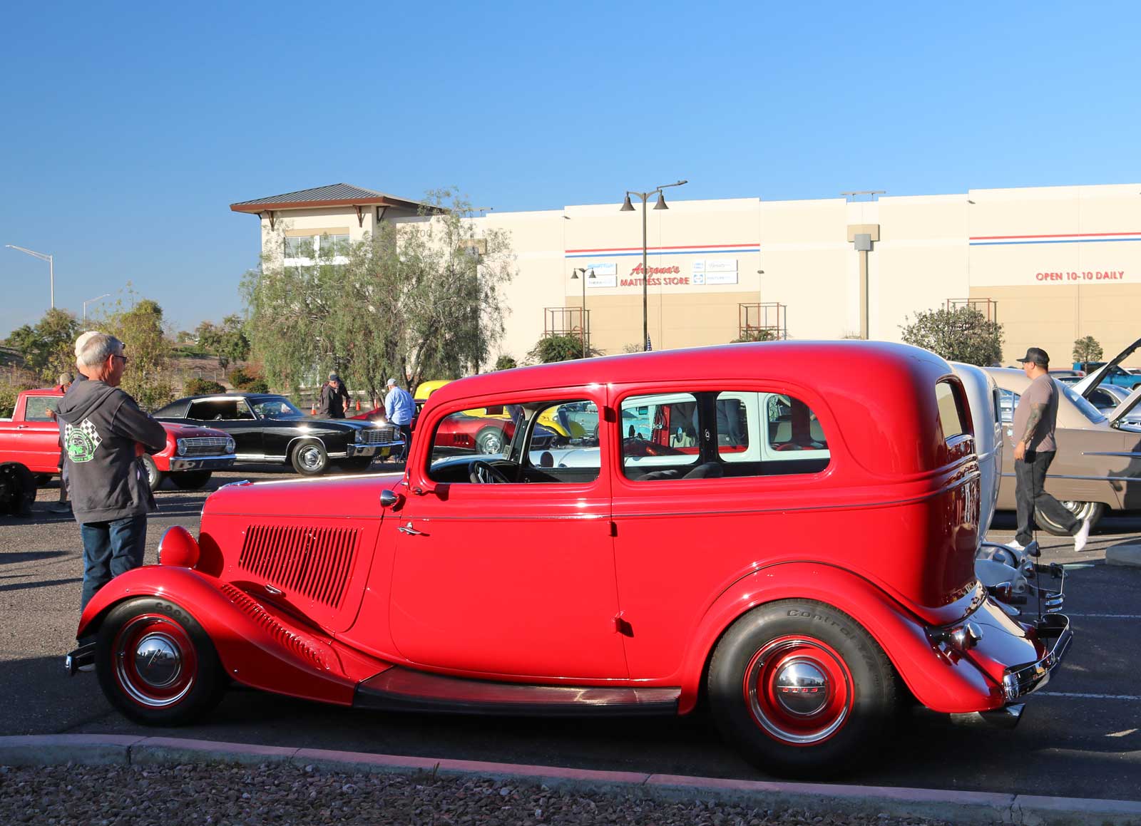 Cars, trucks, and amazingly unique custom rods filled the expansive lot today at American Furniture Warehouse, which is conveniently located at 4700 S Power Road in the vibrant city of Gilbert, Arizona. Enthusiasts and families alike gathered to admire the diverse array of vehicles, showcasing a true passion for automotive excellence and craftsmanship.
